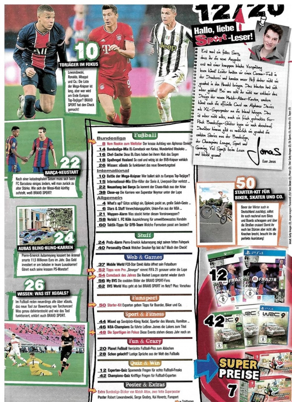 Bravo Sport ist eine deutsche Sportzeitschrift für Jugendliche und junge Erwachsene, die seit 1994 erscheint und sich vor allem auf Fußball und weitere beliebte Sportarten wie Basketball, Formel 1, Handball und E-Sports konzentriert. Sie bietet eine Mischung aus aktuellen News, Spielanalysen, Interviews mit Sportstars, Hintergrundberichten und spannenden Reportagen.